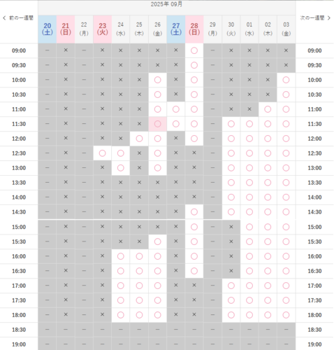 ※更新時間によりご予約状況が変わっている場合がございますご了承ください。