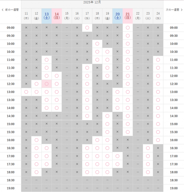 ※更新時間によりご予約状況が変動しますのでご了承ください。