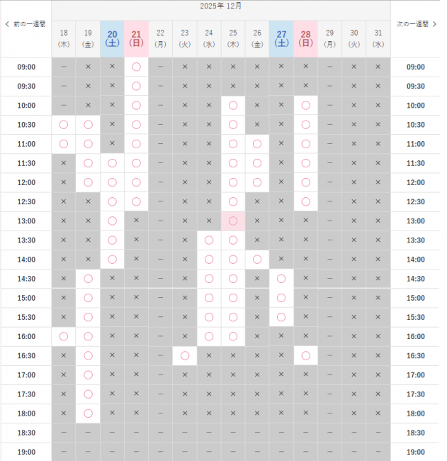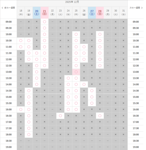 ※更新時間によりご予約状況が変動しますのでご了承ください。