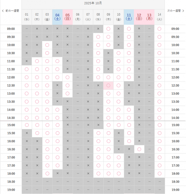 ※更新時間によりご予約状況が変わっている場合がございますご了承ください。