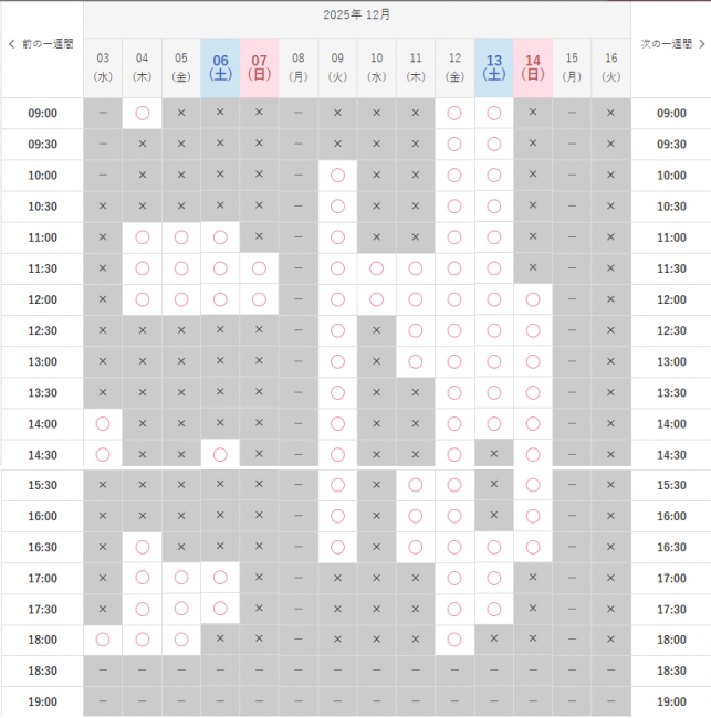 ※更新時間によりご予約状況が変動しますのでご了承ください。