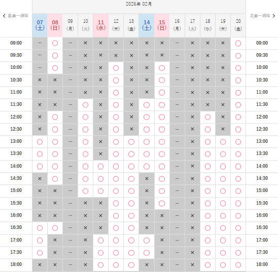 ※更新時間によりご予約状況が変動しますのでご了承ください。