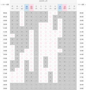 2025.11.15~2週間先のご予約状況