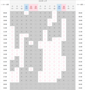 2025.10.17(金)から2週間先のご予約状況